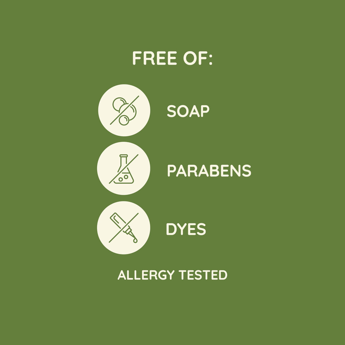 Material Type Free :: Paraben Free, Soap Free, Dye Free
