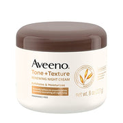 Aveeno Tone + Texture Renewing Night Cream is a gentle exfoliating and moisturizing cream that softens, smooths, and nourishes sensitive skin overnight, revealing a radiant complexion.