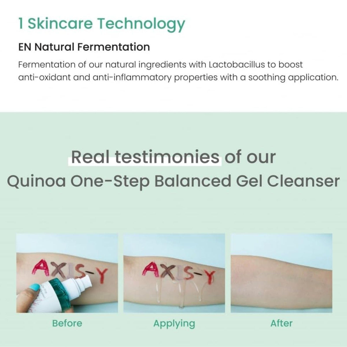 AXIS-Y Quinoa One Step Balanced Gel Cleanser - Deep Hydrating Makeup Remover Facial Cleansing Gel - Vegan Korean Skin Care Face Wash for All Skin Types - 6.08 fl. oz.