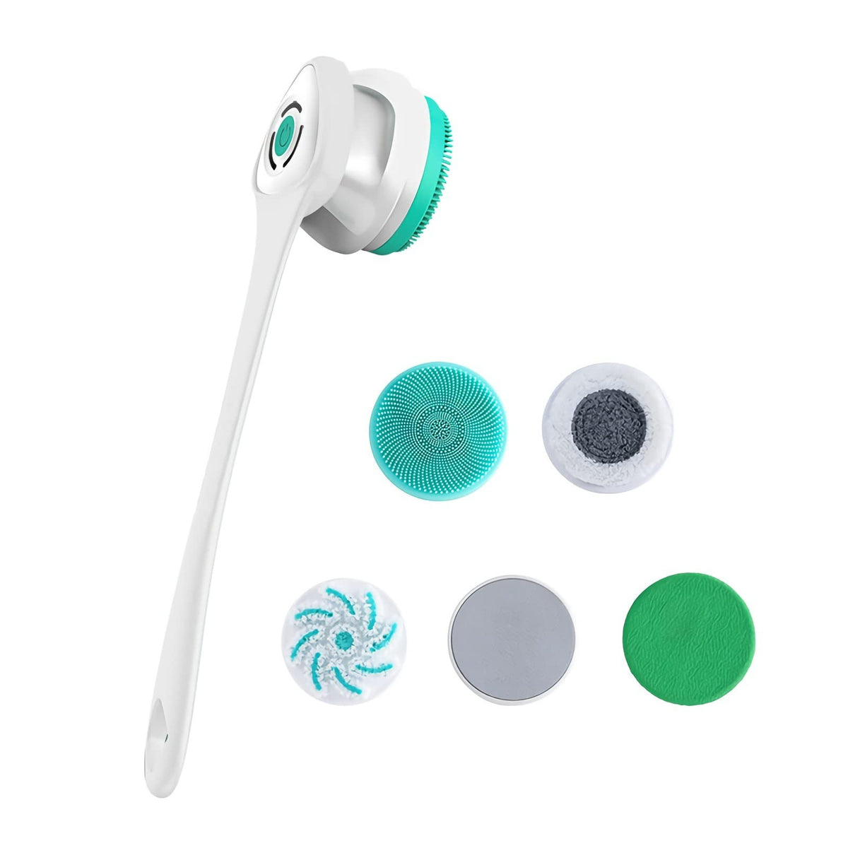 AZKSUN Electric Shower Brush, Body Scrubber, Facial Brush, Exfoliate, with 5 Shower Headsï¼Ë†Whiteï¼â€°