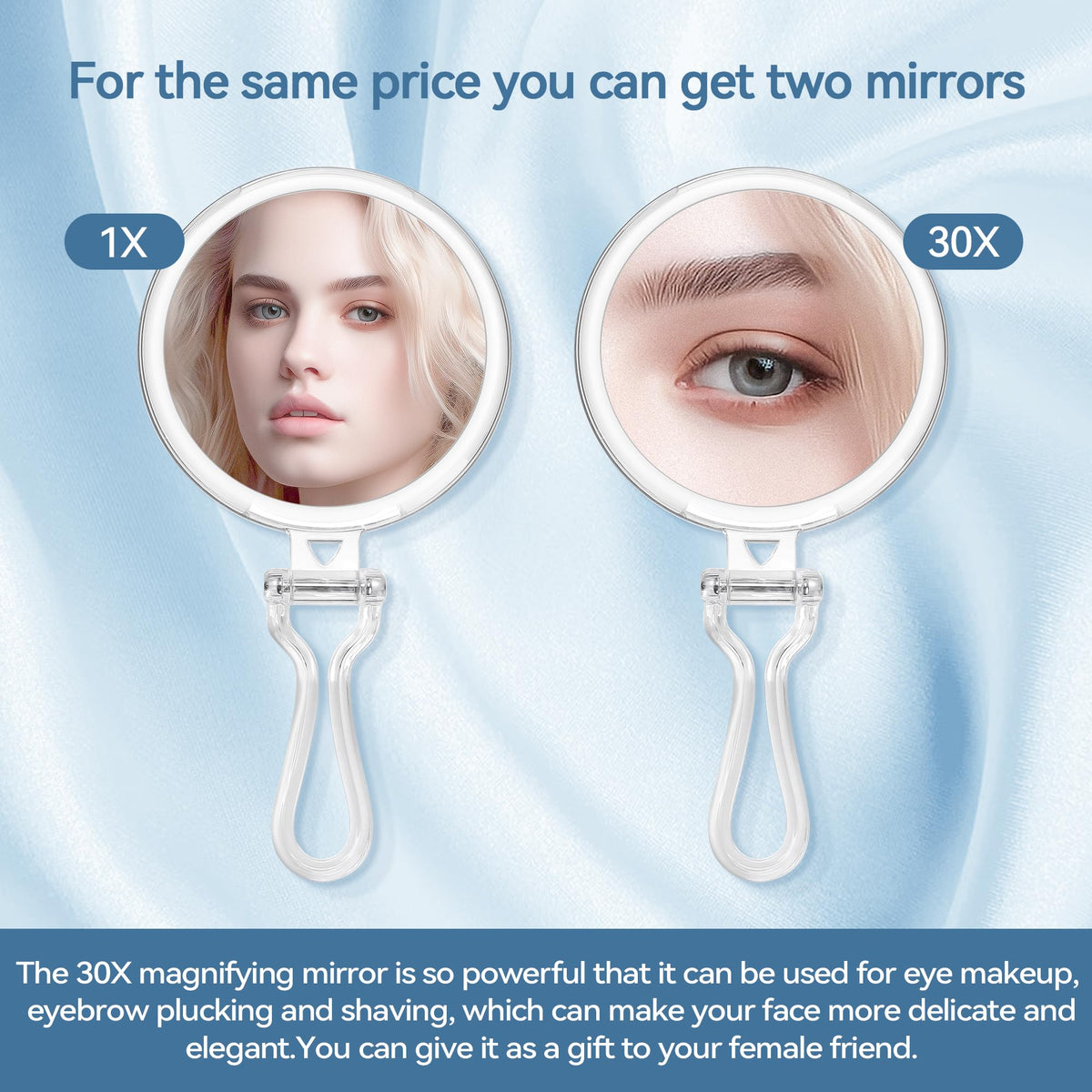 B Beauty Planet 30X Magnifying Mirror for Travel with Handle, Double-Sided 1X/30X Magnification Hand Mirror for Makeup