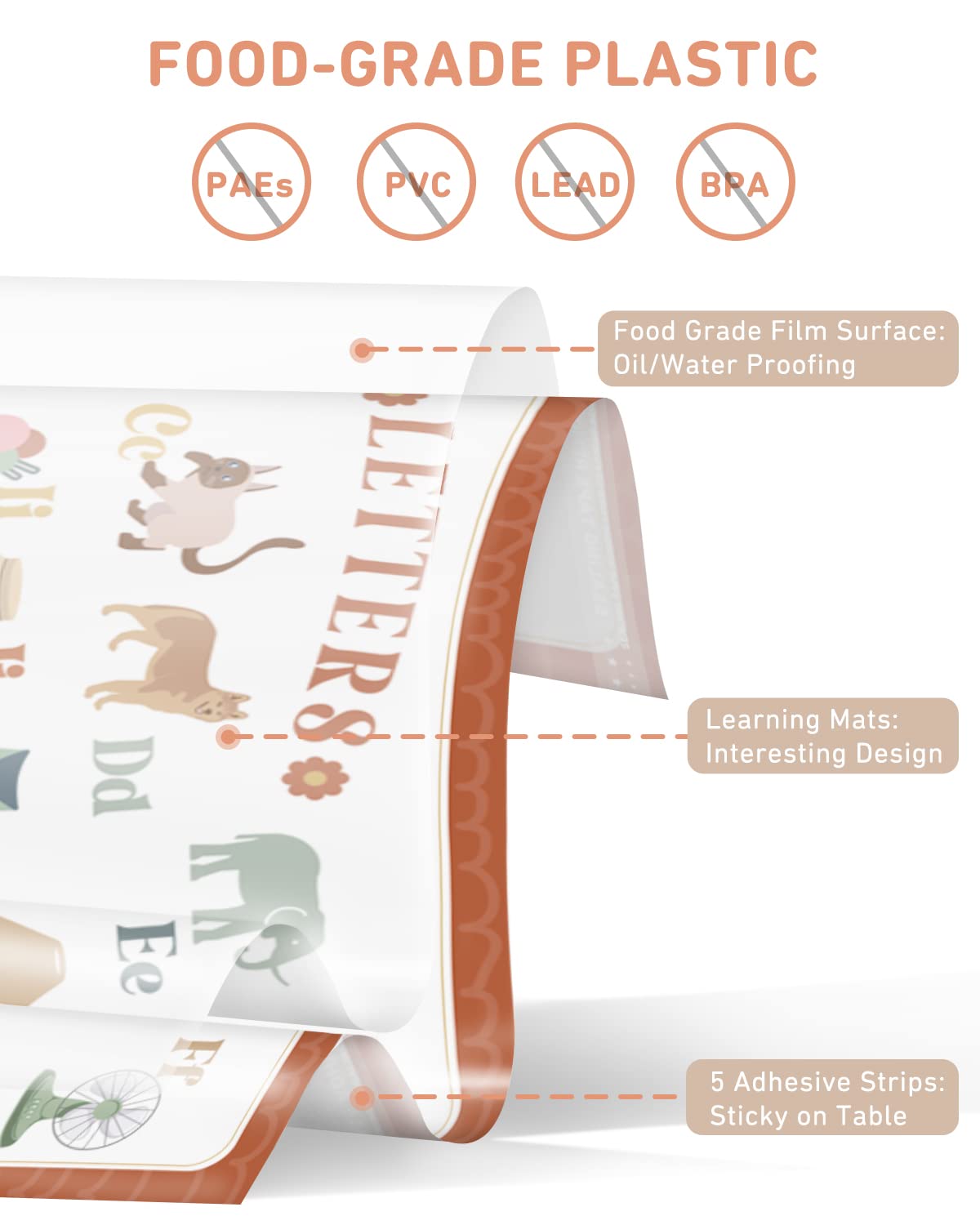 Babebay Disposable Placemats for Baby, 40 Pack Sticky Toddler Placemat for Restaurants, Dining Table, Party, Travel, 12 x 18 with 4 Designs