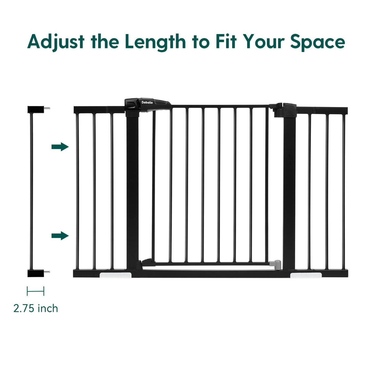 BABELIO Metal Baby Gate, 2.75 Inch Black Extension, Extra Wide Baby Gates for Stairs & Doorways, Pressure Mounted Walk Thru Child Gate with Door, NO Need Tools NO Drilling,28 Tall