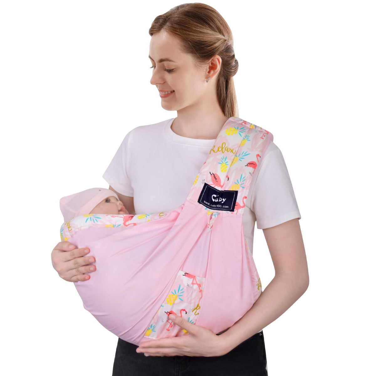 Baby Carrier by Cuby, Natural Cotton Baby Wraps Sling Baby Holder Extra Comfortable for Easy Wearing Carrying for Newborn, Soft and Adjustable Newborn and Toddler Carrier Slings (Pink Flamingo)