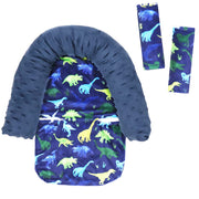 Baby Carseat Headrest and Strap Covers, Dinosaur Minky Infant Strollers Head Support & Seat Belt Cover, Toddler Strollers Headrest and Neck Cover, Car Accessories for Newborn Boys Girls