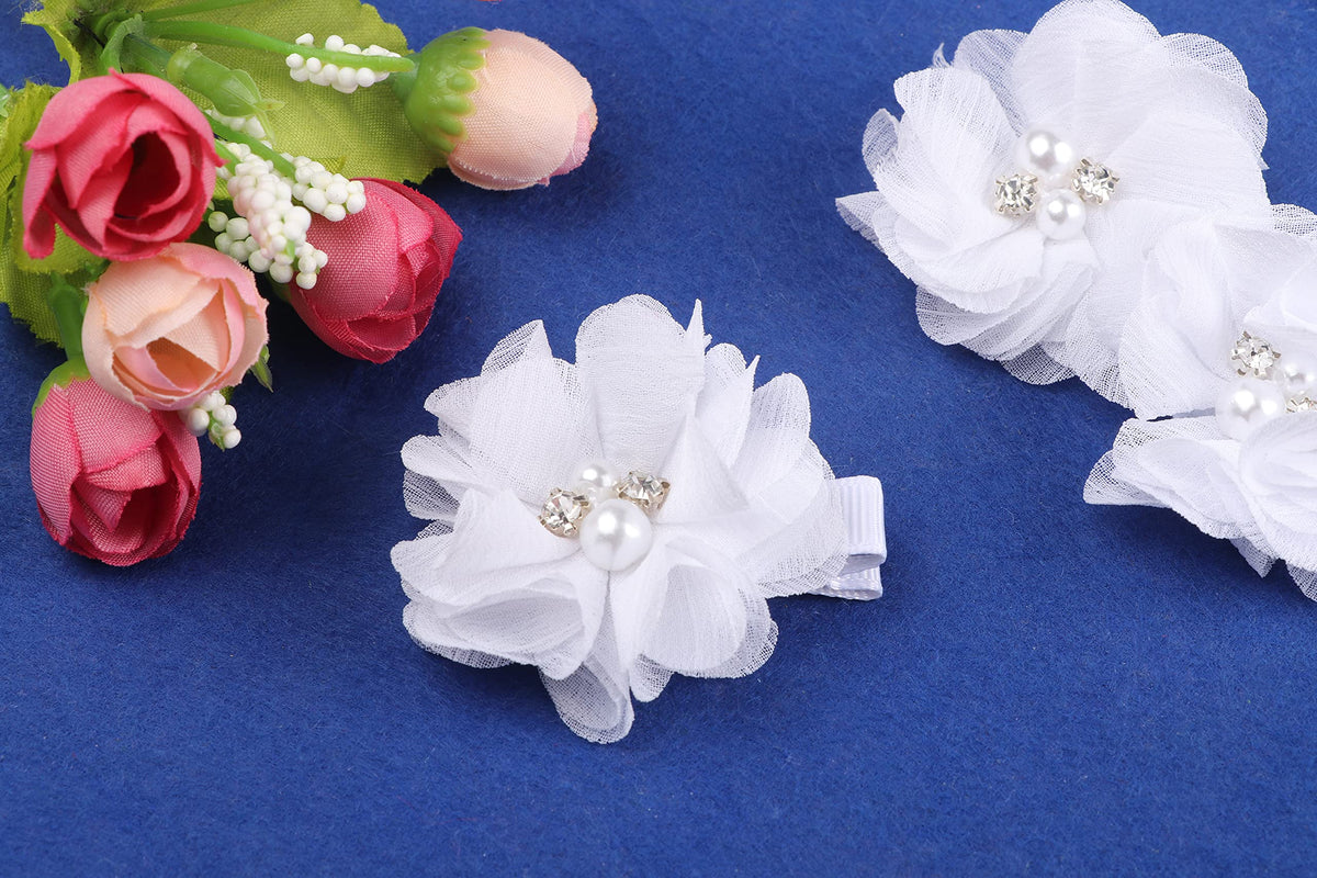 Baby Girls Chiffon Flower Hair Clips with Rhinestones and Pearl,YYCRAFT 10 pcs Party Wedding 2 Hair Accessory for Kids Toddler Infant Girls(Snow White)