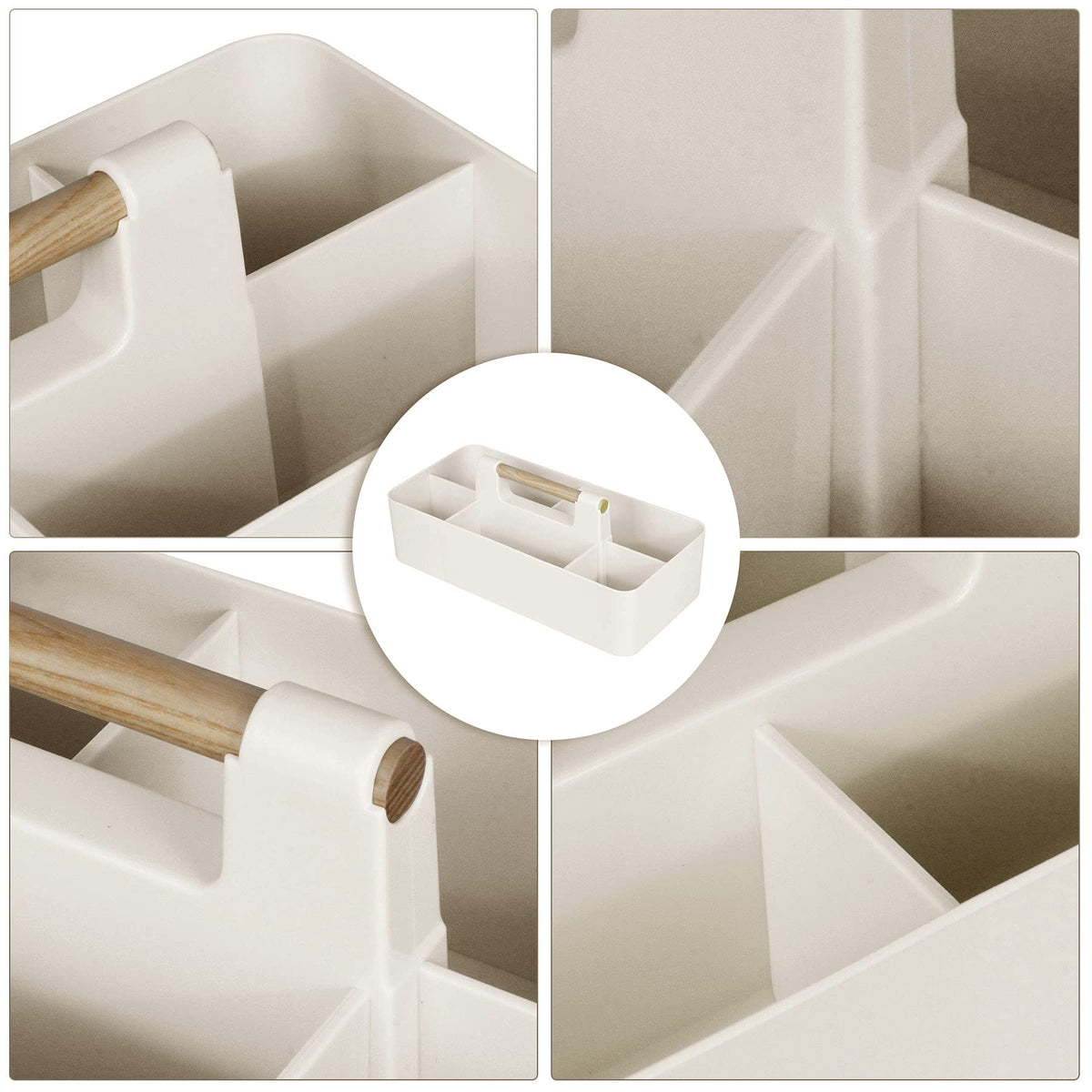 Stay organized with the Baby Shower Caddy, a portable storage organizer perfect for child essentials. The beige caddy with a wood handle is ideal for bathroom or dorm room use.