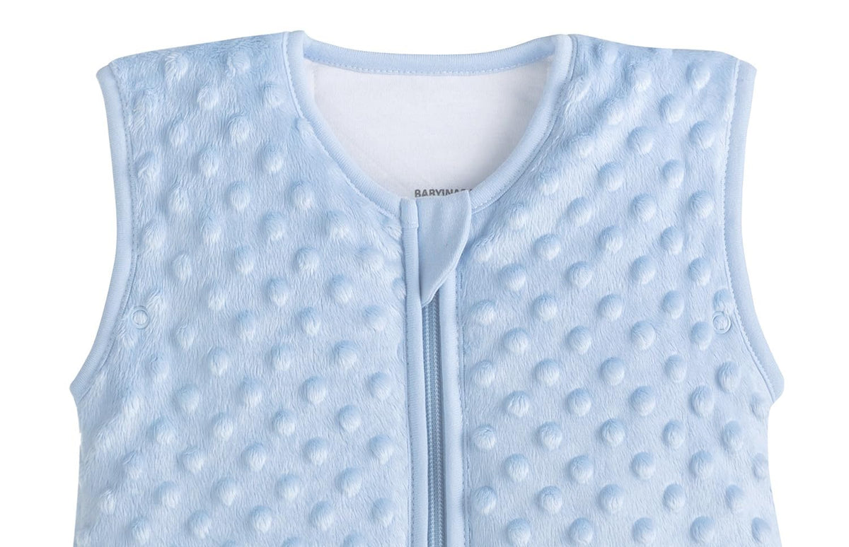 Introducing the BABYINABAG Summer Model Baby Sleeping Bag and Sack, designed with plush Minky Dot fabric to provide a cozy and safe sleep environment for infants and toddlers. The 1.25 Tog rating ensures optimal comfort throughout the night.