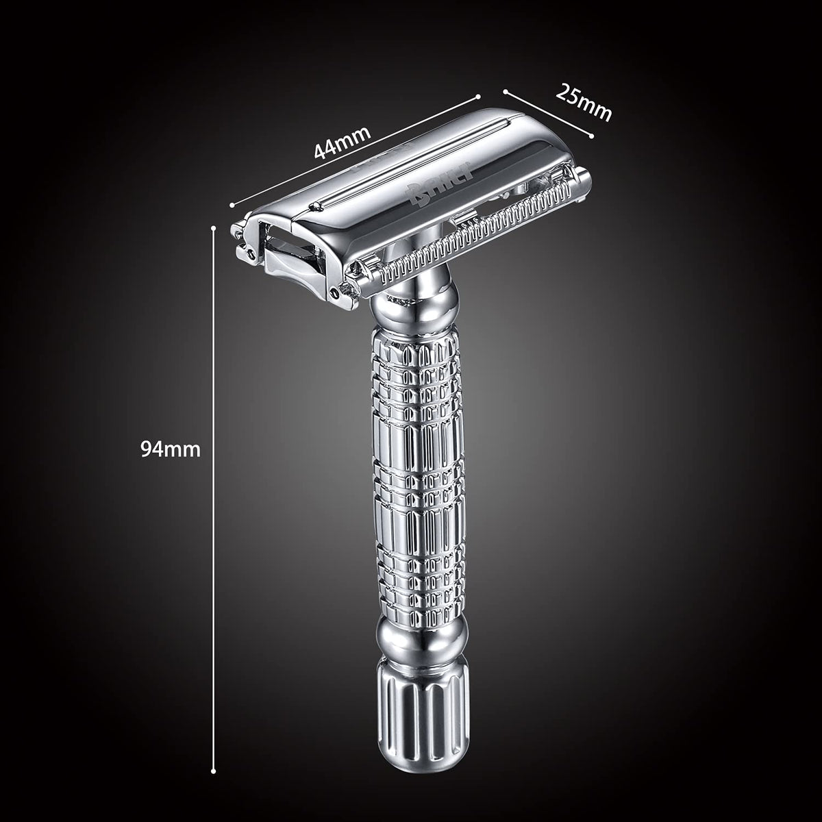BAILI Luxury Classic Men's Double Edge DE Safety Razor Shaver Twist Butterfly Open Head with 1 Blade 1 Mirror Case Silver