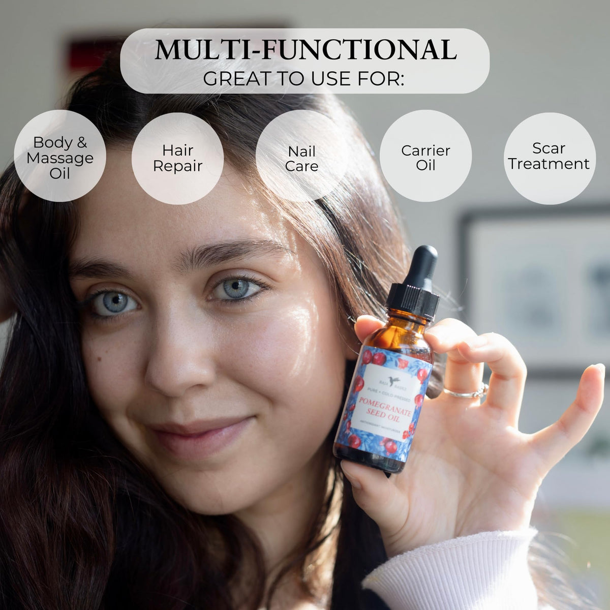 Baja Basics Pomegranate Seed Oil - Pure, Cold Pressed, Unrefined - Organic Body Oil - Antioxidant Serum for Face, Hair, Skin and Nails - Natural Moisturizer & Scar Treatment - 1 oz