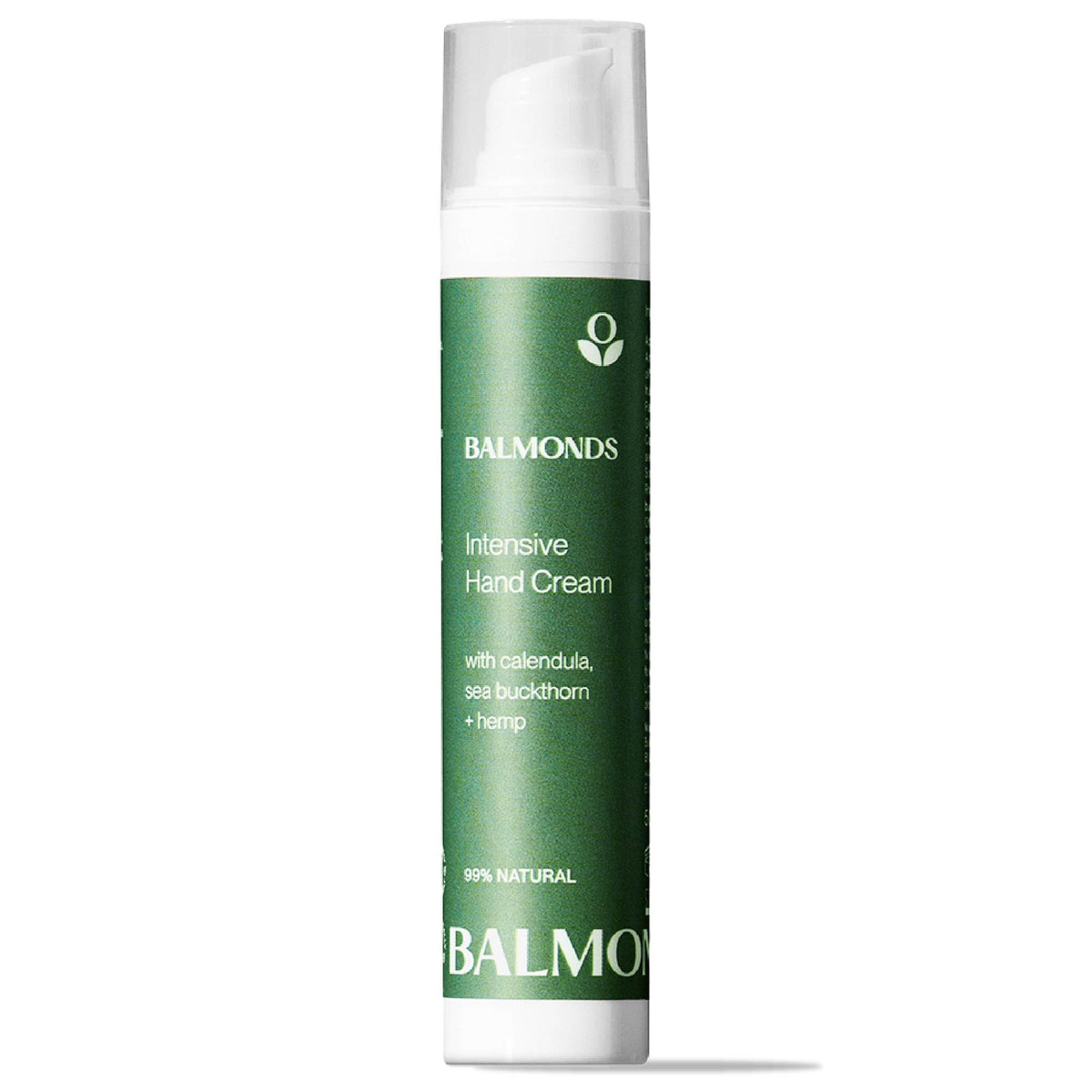 Balmonds Intensive Hand Cream is a 100% natural lotion designed to deeply nourish and protect dry hands. This fragrance-free, vegan, and cruelty-free formula in a 1.8oz tube suits all skin types.