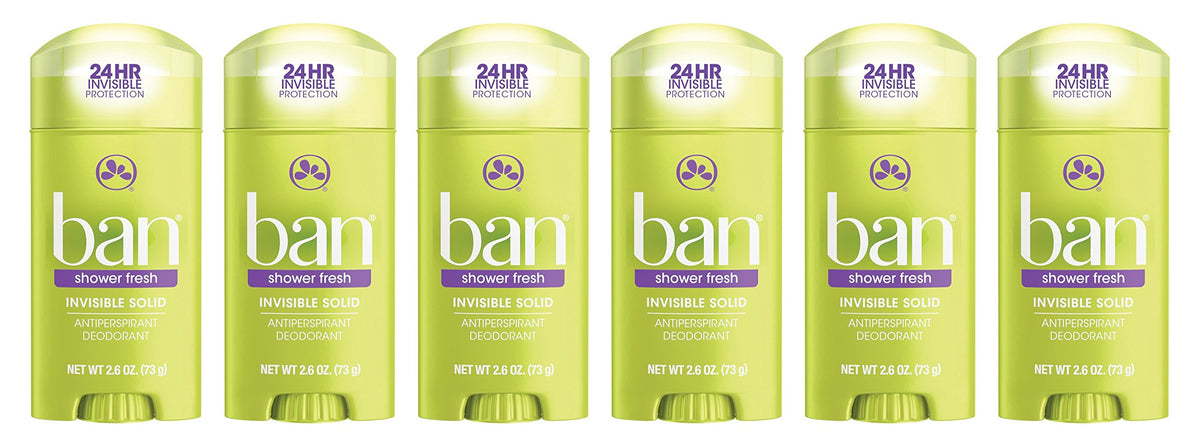 Stay fresh all day with Ban Antiperspirant Deodorant in Shower Fresh scent. This pack of 6, 2.60 Ounce invisible solid deodorants offers long-lasting protection for both women and men.