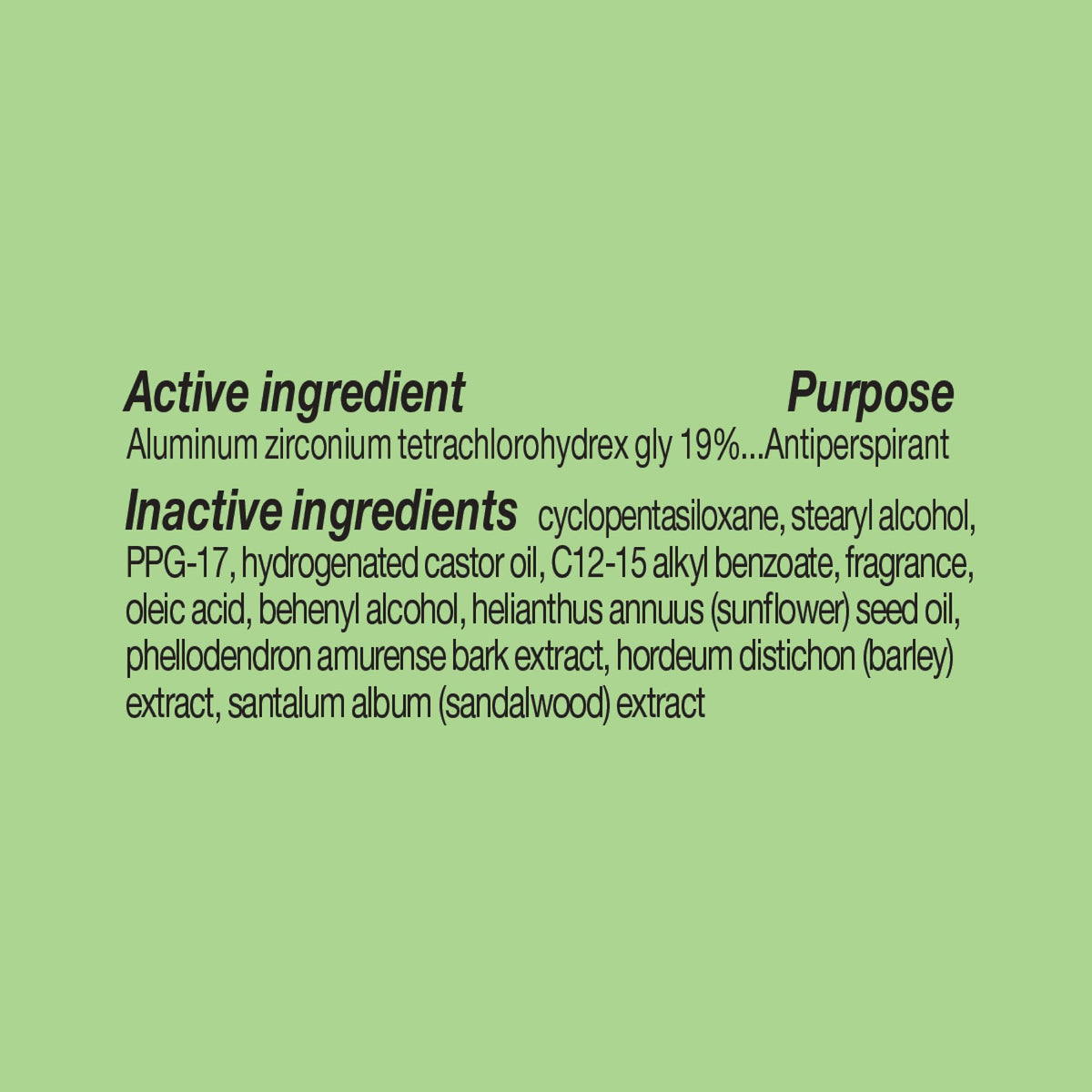 Directions :: Apply 3-4 strokes over the entire underarm area. Close with cap, and store in a cool, dry area.