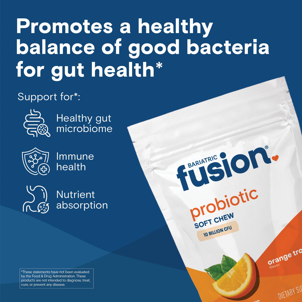 Bariatric Fusion Bariatric Probiotic Soft Chews | Orange Tropical Flavor Chewy Bariatric Vitamin | Bacillus Coagulans 10 Billion CFU Chewable Probiotic | Support Digestive & Immune Health | 60 Count