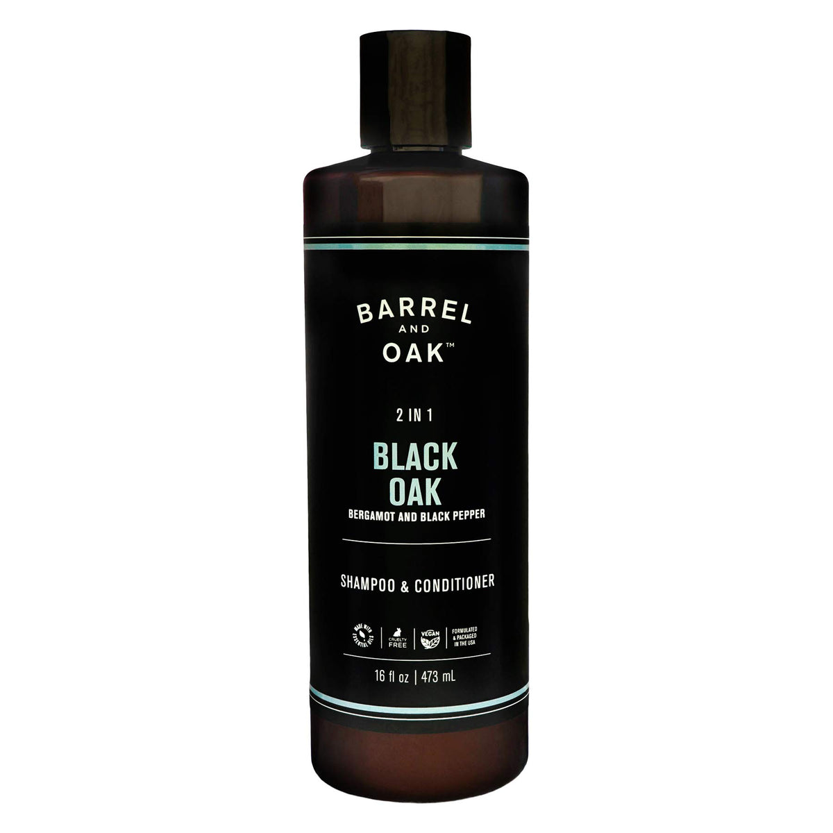 Barrel and Oak - 2-in-1 Shampoo & Conditioner, Men's Shampoo & Conditioner Set, Hair Care for Men, Cleanses Hair & Scalp, Natural Moisturizer, Essential Oil-Based Scent, Vegan (Black Oak, 16 oz)