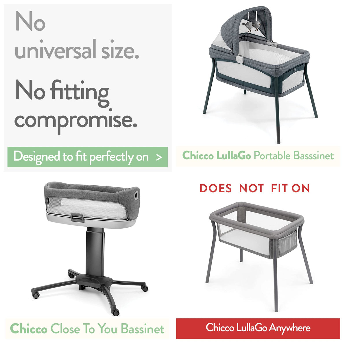 Bassinet Fitted Sheets are compatible with Chicco Lullago Bassinet and Chicco Close to You 3-in-1 Bedside Sleeper. These snuggly soft jersey cotton sheets provide a perfect fit for the 19 x 32 mattress pad, ensuring a cozy and comfortable sleep environment for babies.