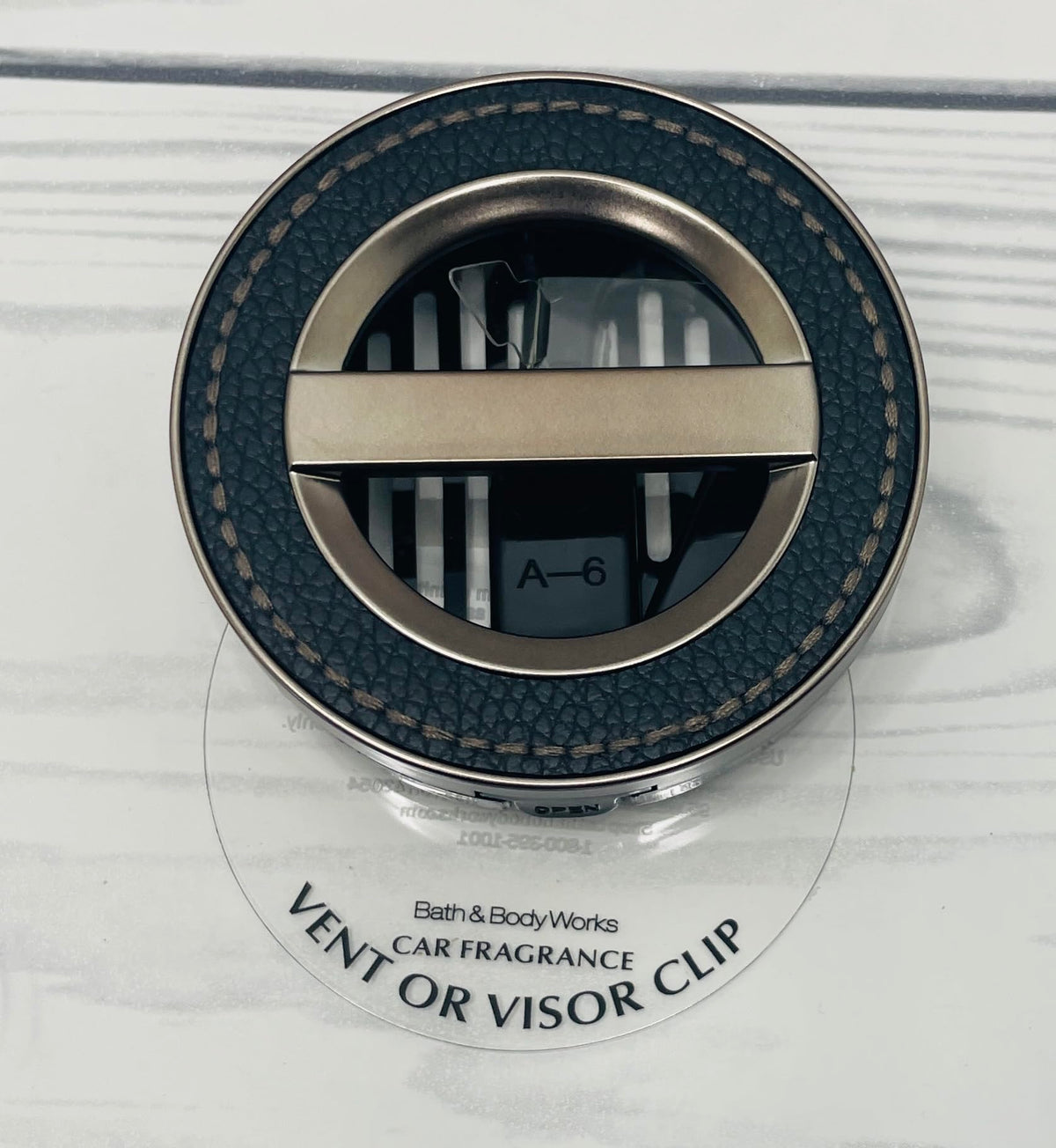 Bath and Body Works Brown Leather Stitched Car Visor Fragrance Holder Easy To Open