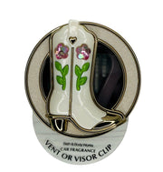 Bath and Body Works Cowgirl Boot White with Pink Flowers and Green Leaves Gold Trim Car Visor Fragrance Holder Easy To Open