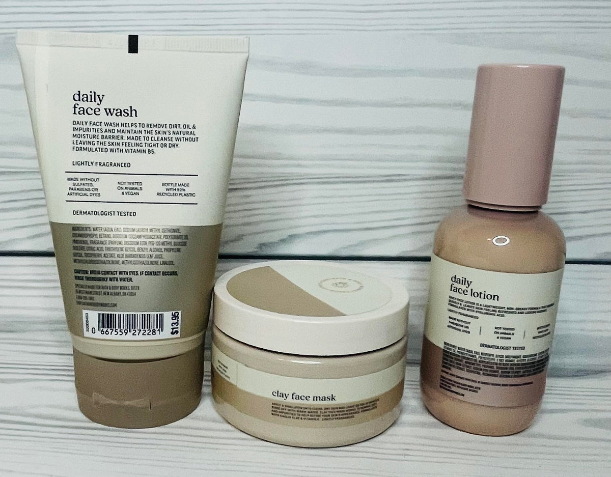 Bath and Body Works Face Essentials Gift Set Includes Daily Face Wash (4 oz), Daily Face Lotion (3.4 oz) and Clay Face Mask (6.5 oz)