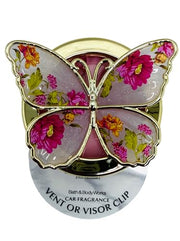 Bath and Body Works Pink Flowers with Gold Garden Butterfly Car Visor Fragrance Holder Easy To Open
