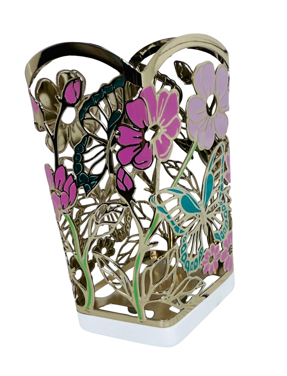 Transform your handwashing routine with the Bath and Body Works Pinks, Teal, Green with Gold Butterflies in The Garden Gentle Foaming Hand Soap Holder. This elegant holder adds a touch of nature to your bathroom decor.