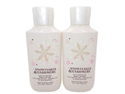 This set contains two 8 oz bottles of Bath and Body Works Snowflakes & Cashmere Super Smooth Body Lotion.