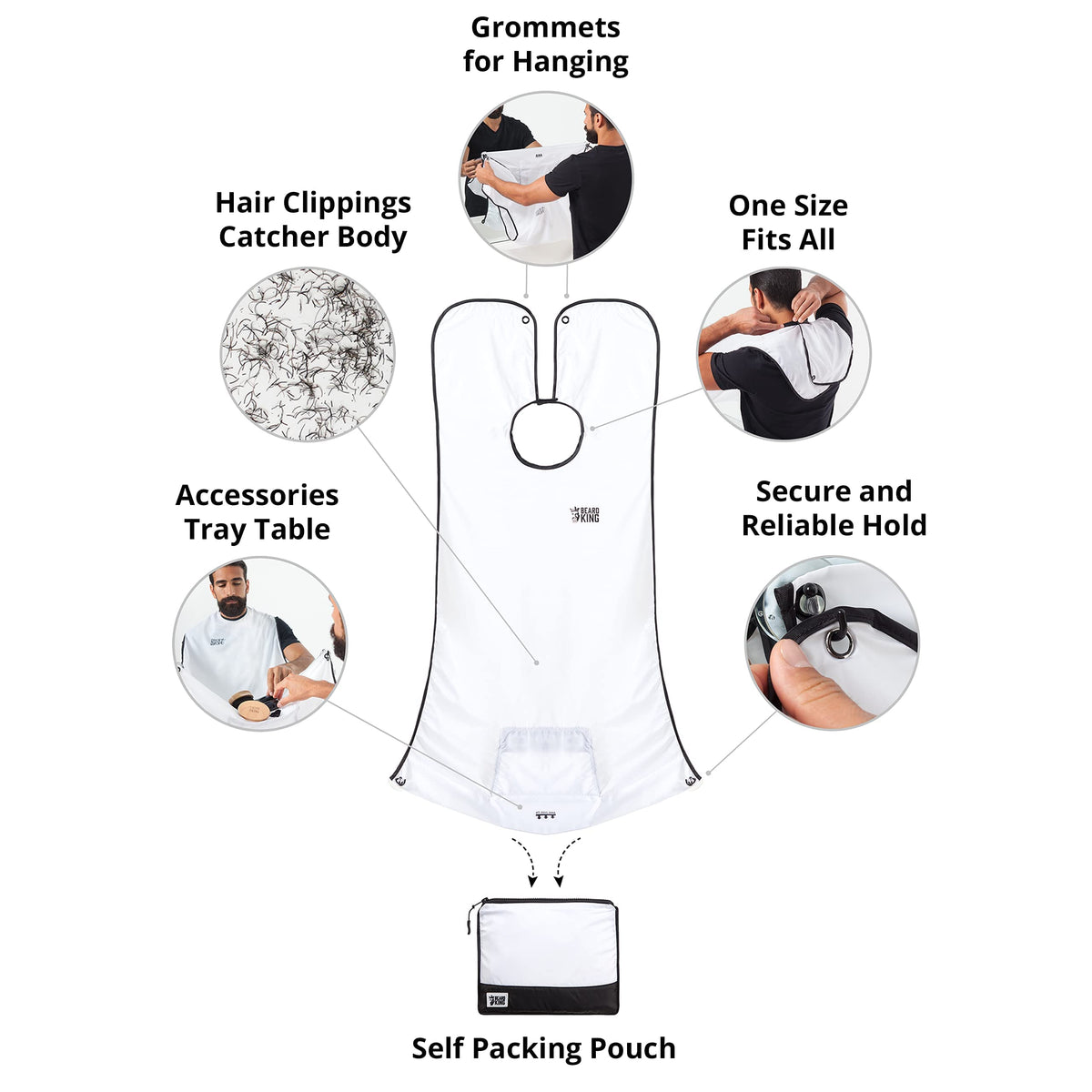 Beard King Beard Bib Apron - Shaving Set for Dad - As Seen on Shark Tank - Men's Hair Catcher for Shaving - Grooming Accessories - Packing Pouch, White