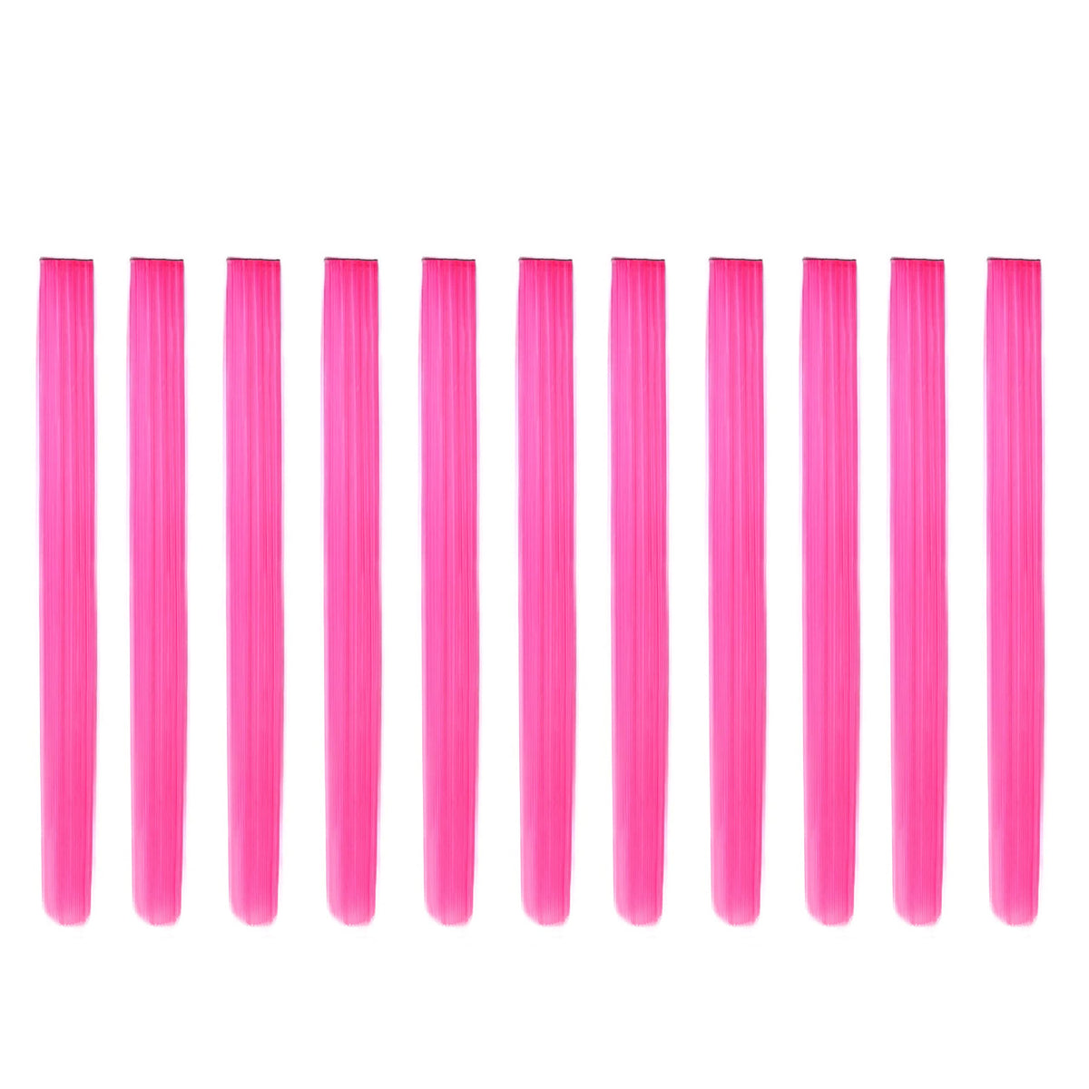 Beaute Galleria - Bundle 11pcs Single Color 21 Inches Straight Party Highlights Clip In Synthetic Hair Extensions Cosplay Comic Con Halloween Costume (Pink)