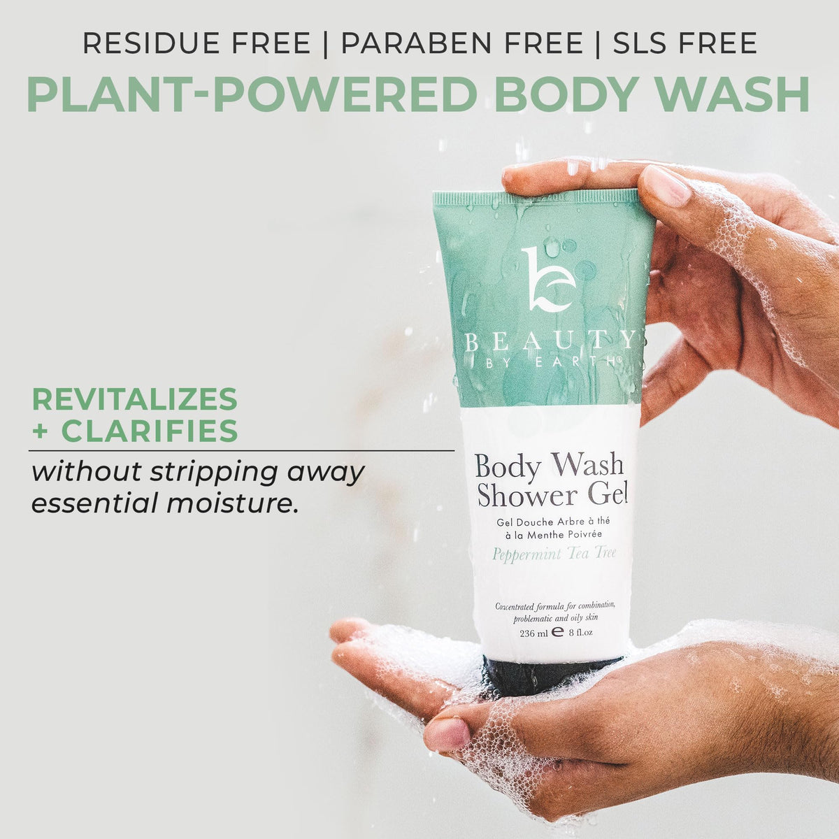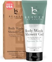 Beauty by Earth Peppermint Tea Tree Oil Shower Gel Body Wash - Made in USA with Organic & Natural Ingredients, Mens Body Soap Liquid, Moisturizing Cleansing Gel for Men & Women, Non Toxic Body Wash