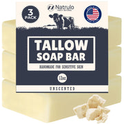 Beef Tallow Soap Bar – All Natural Grass Fed Tallow Soap Unscented – Moisturizing Face & Body Wash Great for Eczema, Dry, Itchy, Sensitive Skin – Handcrafted Bath Soap for Adults, Kids, Made in USA