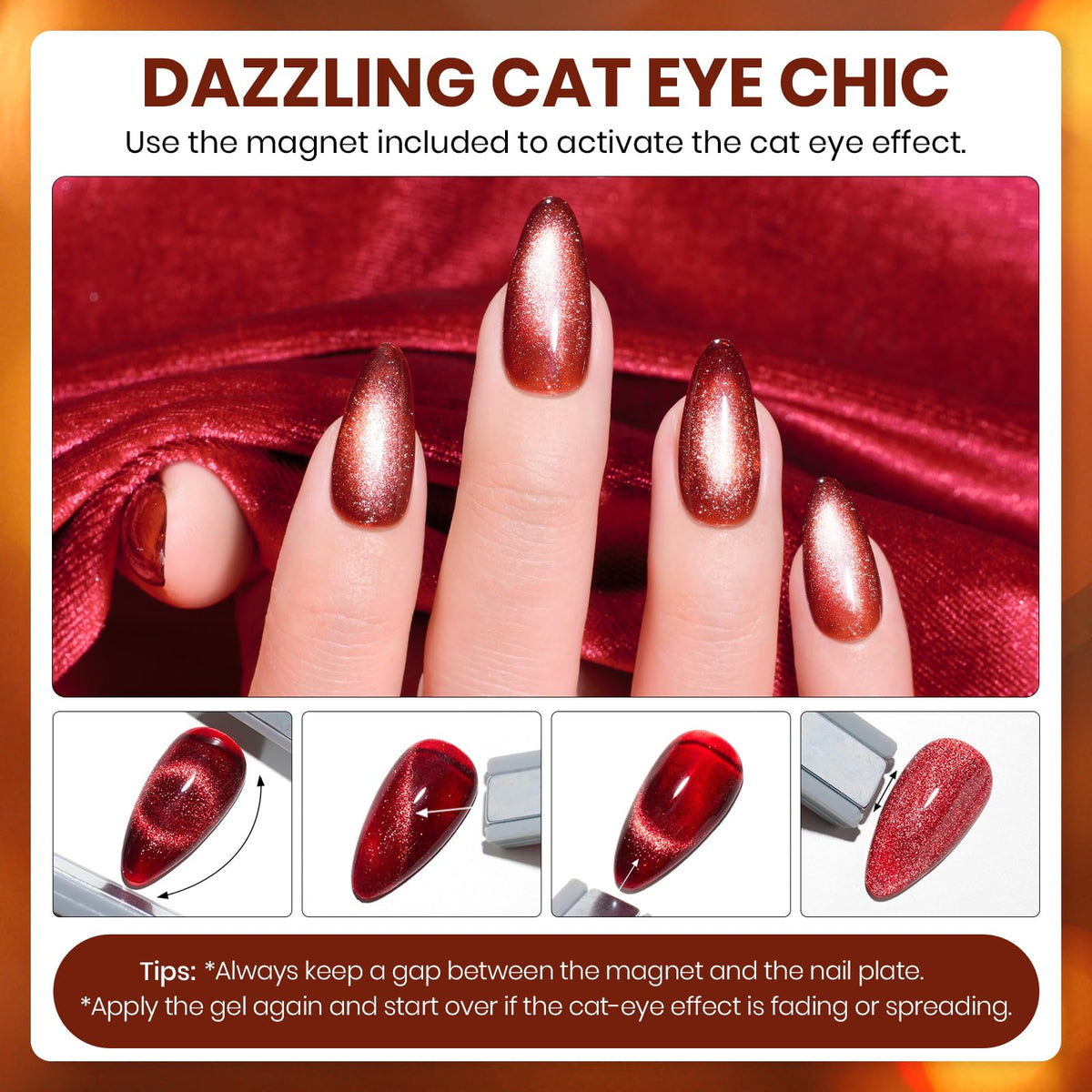 Beetles Fall Gel Nail Polish Set – Opulent Glow Cat Eye Gel Polish, 20 Colors Red Orange Yellow Glitter Brown, Soak Off UV LED with Base Glossy Matte Top Coat for DIY Manicure Gift for Women