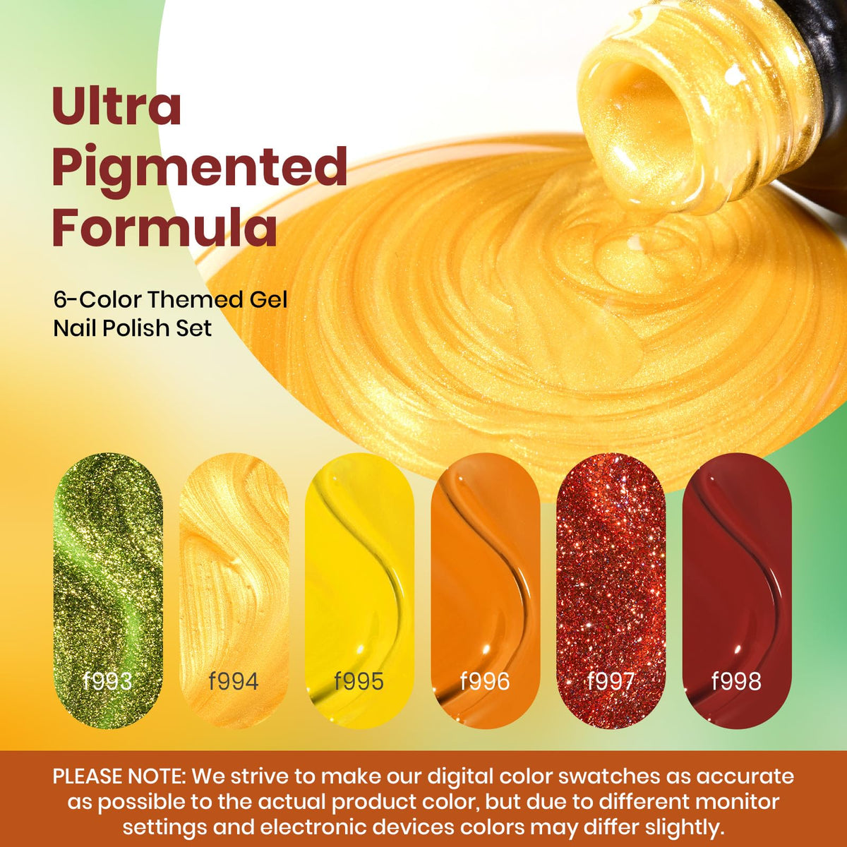 Beetles Fall Gel Nail Polish Set, 6Pcs Autumn Realm Collection, Yellow Orange Burgundy Red Green Gel Polish Golden Glitter Nails Kit DIY Nail Art Gifts for Women