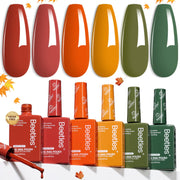 Beetles Fall Gel Polish Set – Golden Hour Hema Free Gel Nail Polish Kit, 6PCS Burgundy Orange Dark Red Green Color Matching Bottles Soak Off UV LED DIY Home Salon Gift for Women
