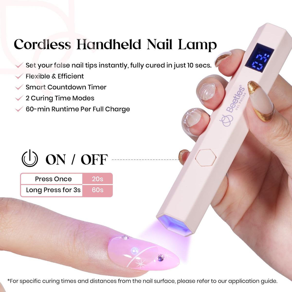 Directions :: Inferred 1. Clean and prepare natural nails. 2. Select nail tip size. 3. Apply solid nail gel glue. 4. Attach nail tip. 5. Use base gel and handheld nail lamp. 6. Finish with desired nail art or top coat.