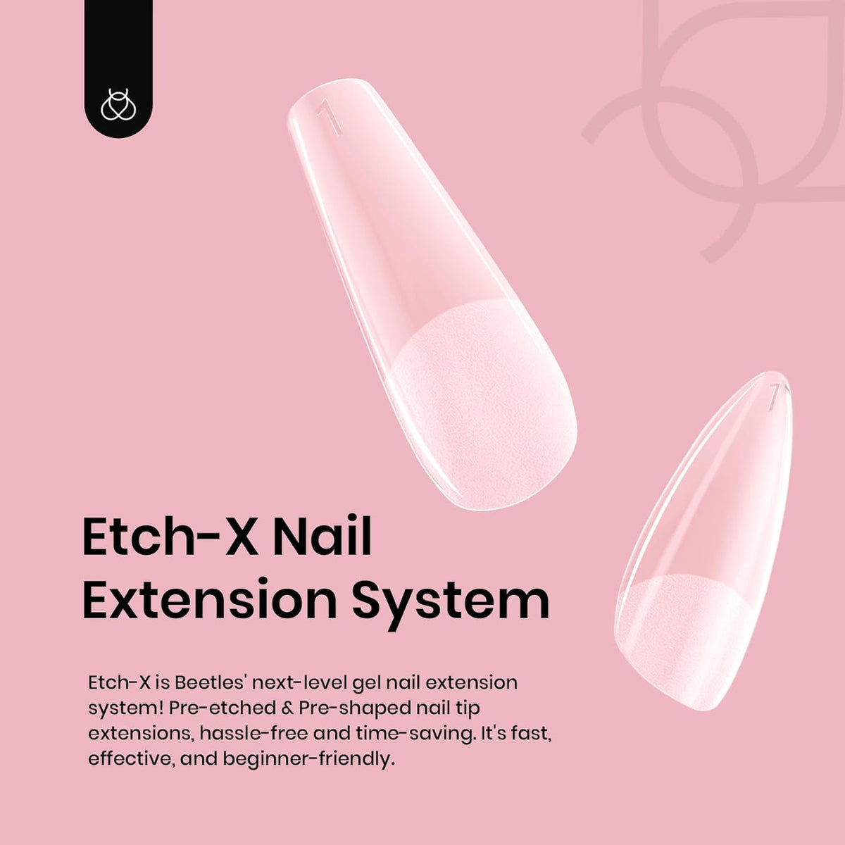 Beetles Gel Nail Tips Medium Almond Etch X Nail Tips, 12 Sizes 288 PCS Half Matte Full Cover False Nails Clear Acrylic Nails Glue on Nails DIY Gift for Women
