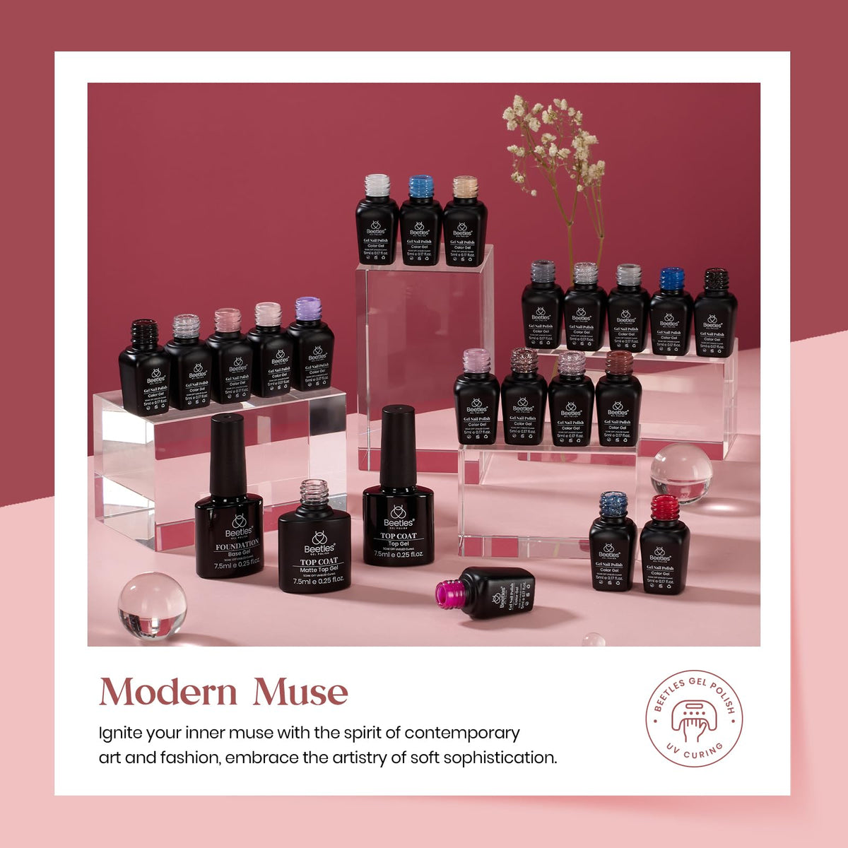 beetles Gel Polish Kit, Nude Gray Pink Blue Burgundy Glitter Gel Polish Set Modern Muse Collection with 3Pcs Base Matte Glossy Top Coat Soak off Uv Gel for Women