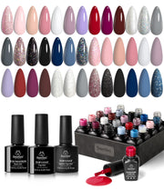 Included Components :: -Nail Gel Polish *20(.17 fl.Oz/Each), -Base Coat and Top Coat *3 (.25 fl.Oz/Each,, Free Gift, )