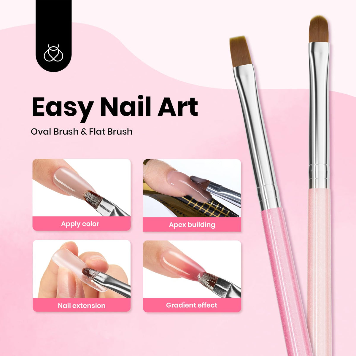 Beetles Nail Art Brushes, 6 Pcs Fingernail Art Design Pens, Pink Handle French Tip Ombre Clean Up Nail Brush Set for Gel Polish with Palette DIY Manicure Tools Gift for Women