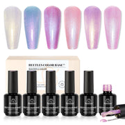 Beetles Pearl Rubber Base Gel Set- 6Pcs Pastel Rubber Base Coat Shimmer Pearl White Pink Purple Mermaid Nail Drawing Builder Gel 5-in-1 Soak Off Nail Strengthener UV Light Cure for Women