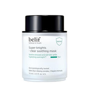 belif Super Knight Clear Soothing Mask is an overnight hydrating face mask that is lightweight and cooling. Enriched with Squalane, this mask provides antioxidant-rich care for your skin without any sticky residue.