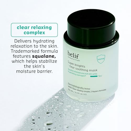 belif Super Knight Clear Soothing Mask, Overnight Hydrating Face Mask, Lightweight, Cooling & Antioxidant-Rich, Squalane, No Wash Off & No Sticky Residue, Korean Skin Care