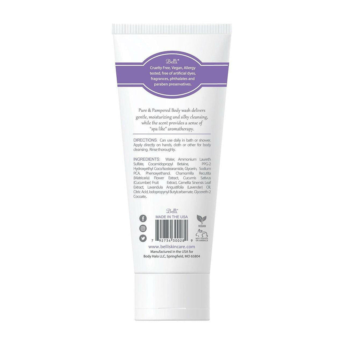Belli Skincare Pure and Pampered Body Wash, Moisturizing Skin Cleanser, Contains Cucumber Green Tea Extracts, For All Skin Types, Dermatologist recommended, 6.5 Oz