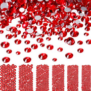 Red, Mixed Ss4 5 6 8 10 12: Bememo 3456 Pieces Nail Crystals Ab Nail Art Rhinestones Round Beads Flatback Glass Charms Gems Stones, 6 Sizes for Nails Decoration Makeup Clothes Shoes (Red, Mi