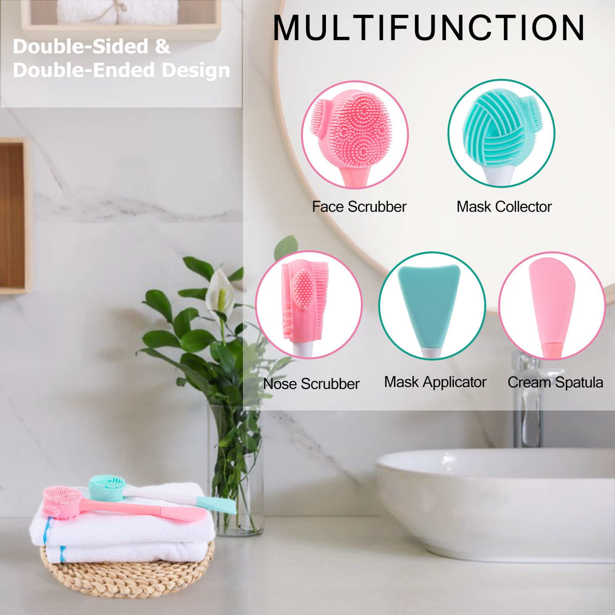 Beomeen 4 Pack Silicone Facial Cleansing Brush 4 in 1, Double-Ended Silicone Face Exfoliating Wash Scrub Brush for Face Skincare and Massage (Multicolored)