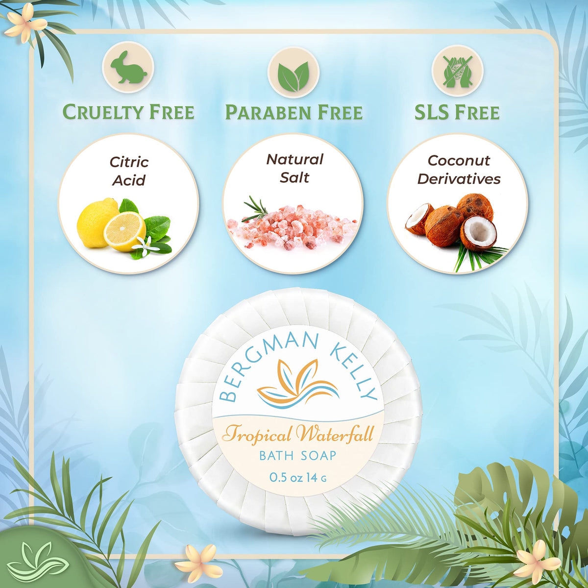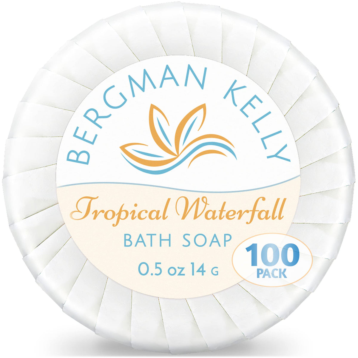 BERGMAN KELLY Sanitary Soap Bars in Bulk (Tropical Waterfall, 0.5 oz, 100PK), Small Individually Wrapped Round Soap, Hotel Toiletries Travel Size for Airbnb, Motel, Guest Bathroom
