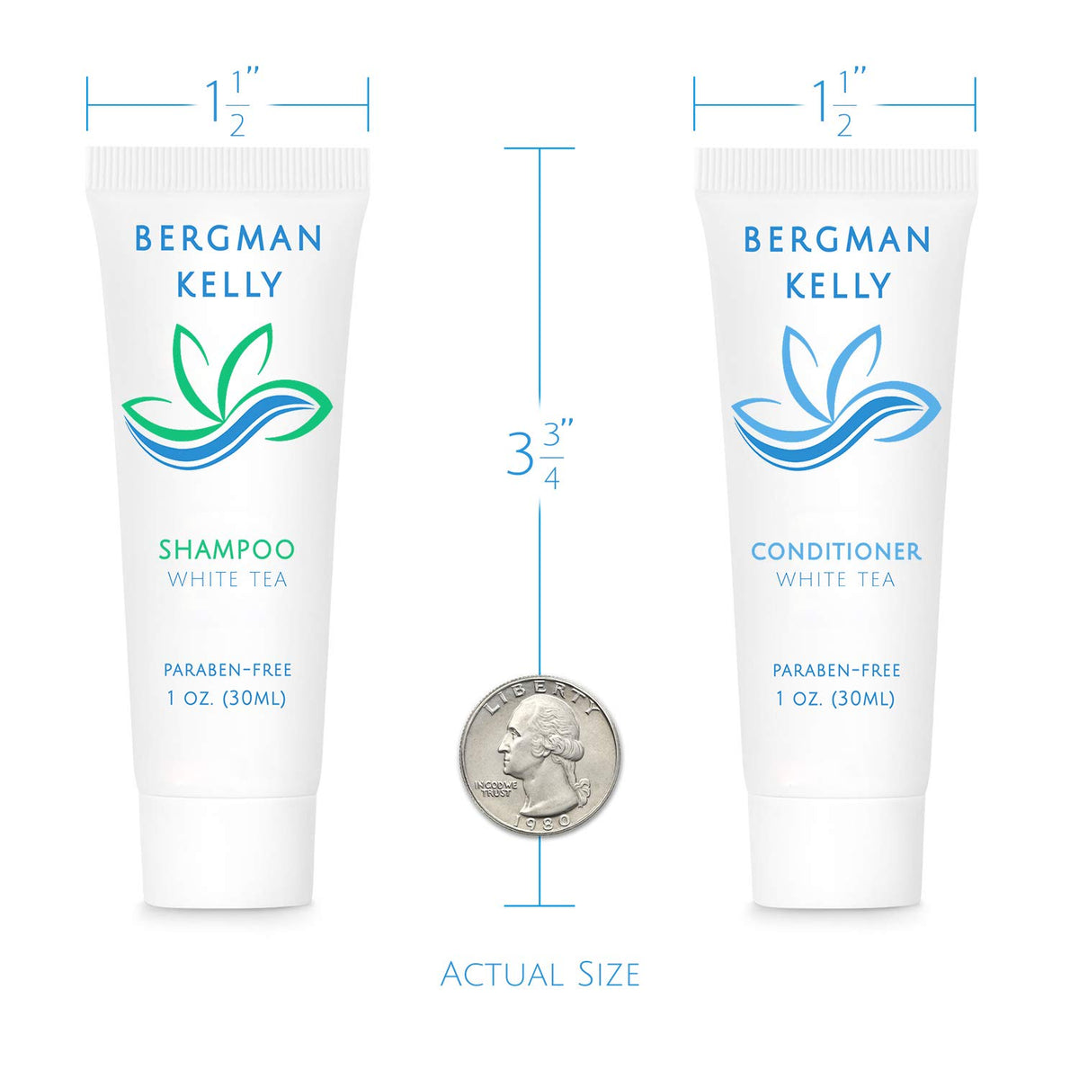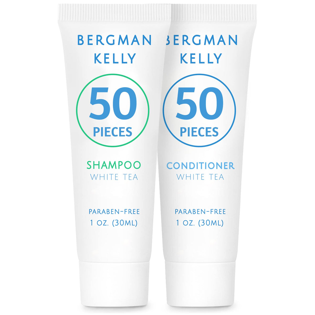 Bergman Kelly - Travel Shampoo and Conditioner Set - 1 fl oz, 100 Pieces, White Tea - Delight Your Guests with Revitalizing and Refreshing Hotel Toiletries and Guest Hospitality in Bulk