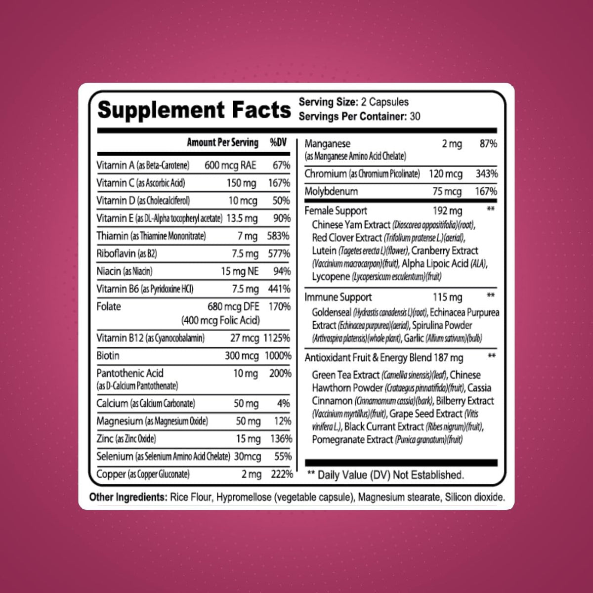 BEST 4U NUTRITION Multi for Her, 60 Capsules, Multivitamin & Multi-Mineral Supplement for Women, Helps Support her Immune System, Muscle Function & Hair, Nails & Skin