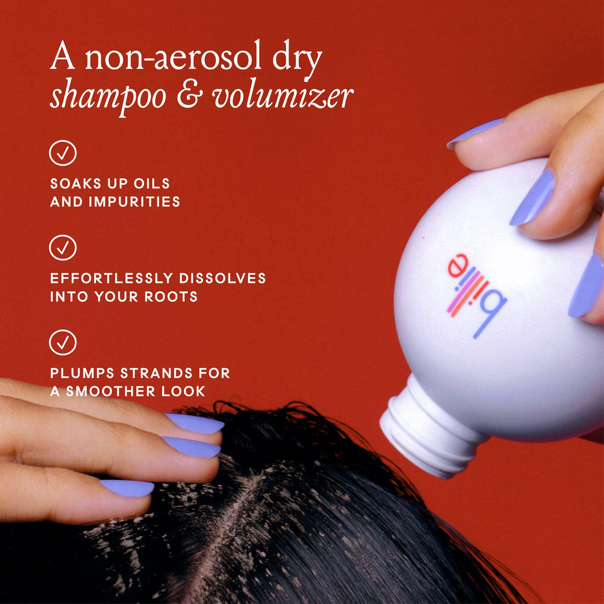 Billie Floof Dry Shampoo is a non-aerosol volumizing powder designed for dark hair. This dry shampoo refreshes your hair instantly, adding volume and texture without any residue, making it a perfect on-the-go solution.