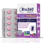 Bio360 Probiotics for Kids is a powerful blend of 15 strains and 5 billion CFU to support brain, immune, and digestive health in children. These chewable probiotics contain organic prebiotics for gut health and constipation relief, all in a delicious mixed berry flavor.