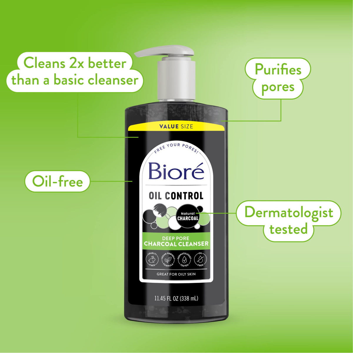 Biore Deep Pore Charcoal Face Wash, Daily Facial Cleanser for Dirt & Makeup Removal, for Oily Skin, Value Size, 11.45 fl oz